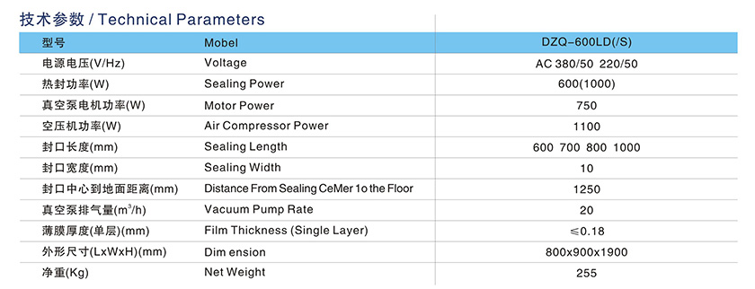 DZQ-600LD(/S)真空氣調(diào)包裝機(jī)
